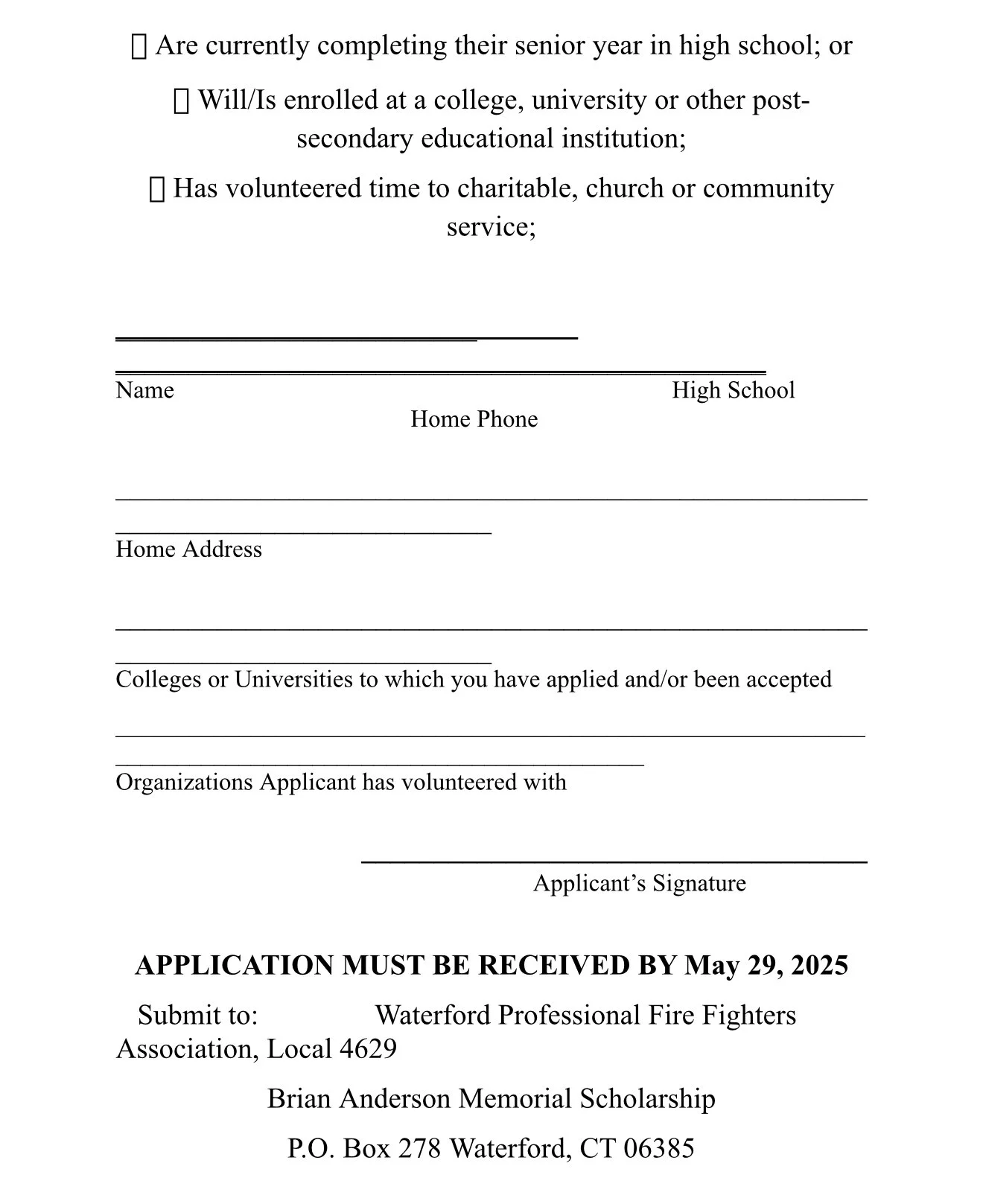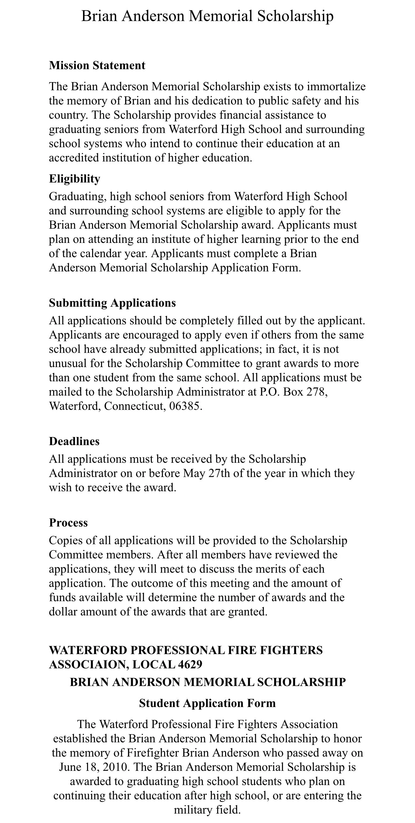 Please use the following form below to apply Name * First Name Last Name Email * Subject * Message * Thank you! The Brian Anderson Scholarship application is now open